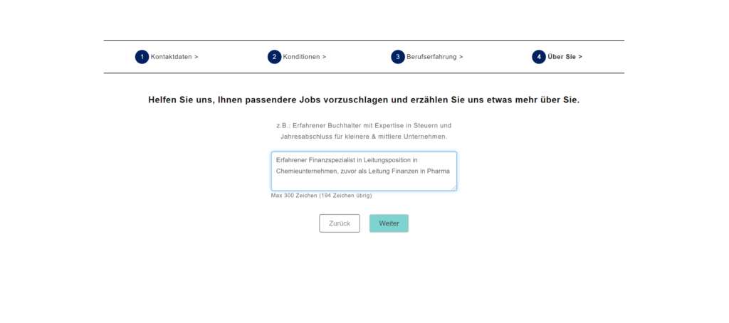 Schritt 2 – Gewünschtes Anstellungsverhältnis